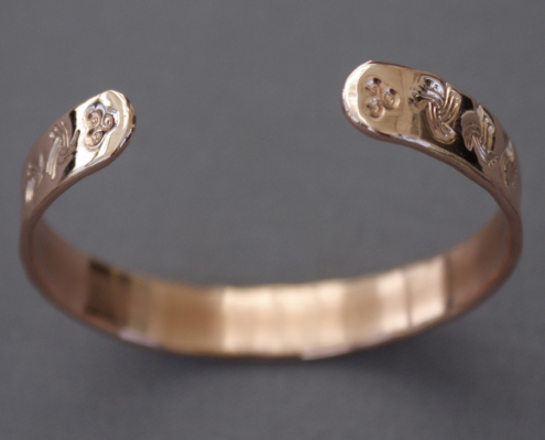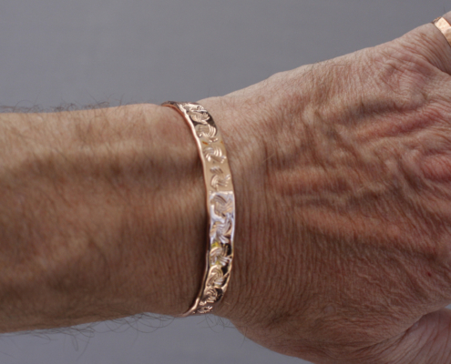 Le bracelet mesure 9 mm de largeur pour 2 mm d’épaisseur, et pèse environ 18 grammes. Grâce à la souplesse naturelle du cuivre, il s’ouvre ou se resserre facilement autour du poignet. Ce bracelet convient aussi bien aux poignets masculins que féminins. Il peut être porté quotidiennement sans crainte, car sa solidité et sa flexibilité sont garanties par une mise en forme manuelle précise.